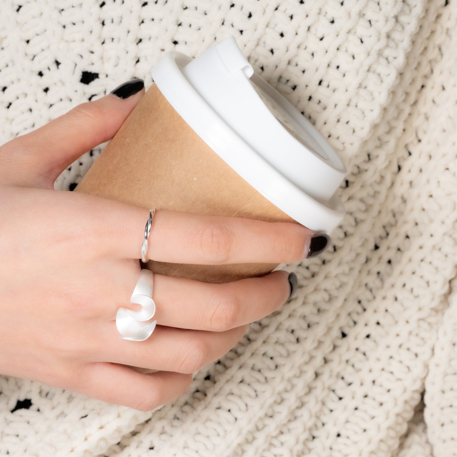 A subtle twist on everyday style. This dainty sterling silver ring features a gently curved design for an elegant, minimalist look. Wear it solo for understated charm or stack it for effortless layering. Perfect for daily wear and timeless styling.