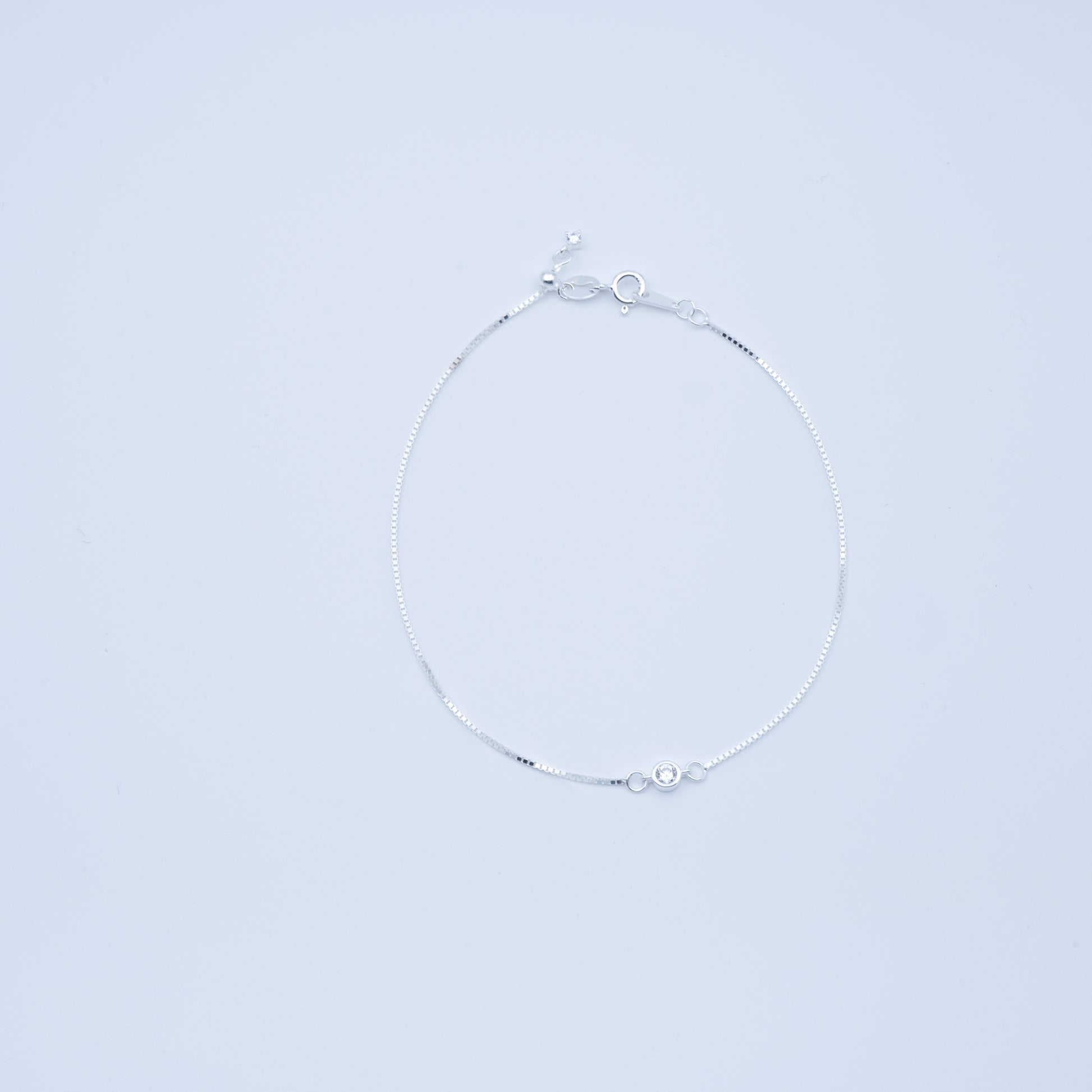 This single diamond sterling silver bracelet is designed with simplicity and balance in mind. Made from high-quality 925 sterling silver, its cool-toned finish highlights the refined clarity of a delicate diamond-inspired zircon detail.