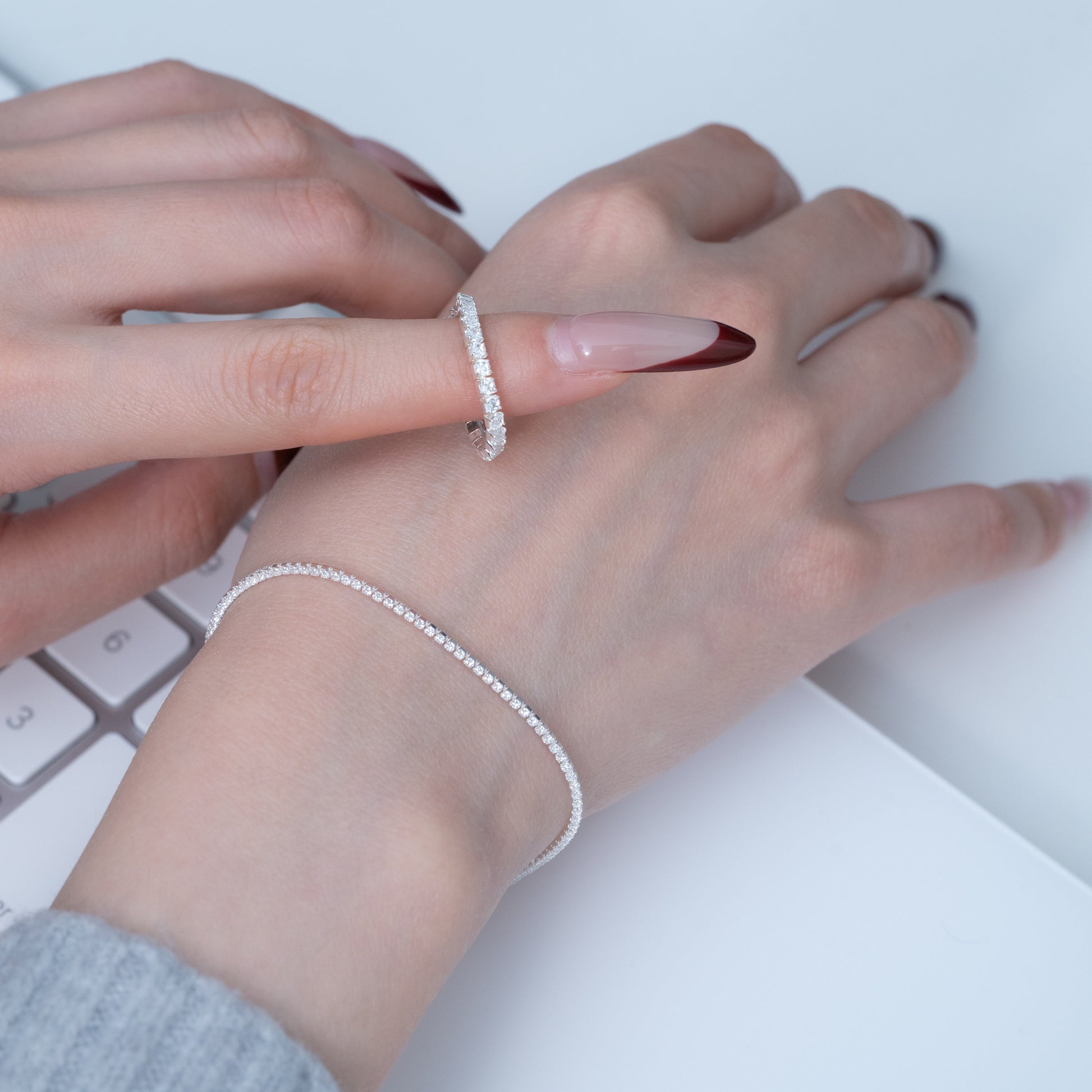 This 1.2 mm sterling silver diamond-studded bracelet features a continuous line of finely set zircon stones, creating a refined, full-sparkle silhouette with a lightweight feel. Crafted from high-quality 925 sterling silver, its slim profile delivers understated brilliance without overwhelming the wrist.