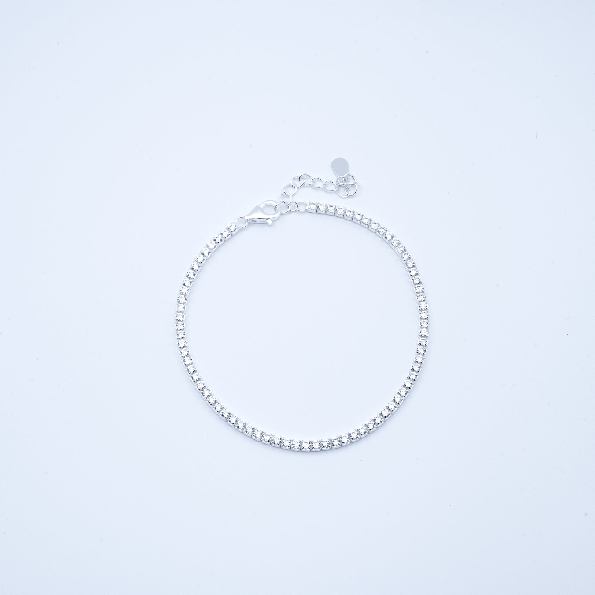 This 2.0 mm sterling silver diamond-studded bracelet features a continuous row of precisely set zircon stones, creating a smooth, radiant line of sparkle with enhanced visual depth. Crafted from 925 sterling silver, it strikes the perfect balance between delicacy and presence.